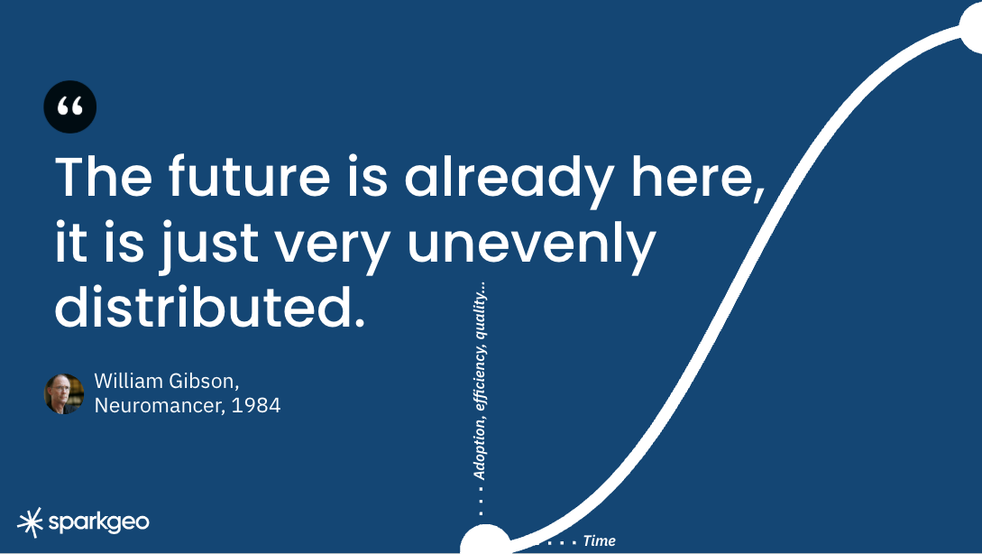 But for those looking to engage with a new market, we will need to ensure that data products are authoritative, accessible, secure, and consistent. Additionally, we should be building componentry that AI technology can assemble into convenient user interfaces. That componentry should provide the algorithmic or geographic rigour to put the minds of the most fervent geodesists at rest. The components should allow non-experts to assemble geographic experiences without worrying about the complexity of clock-building, while knowing that experts have ensured quality, and to assemble their data products to tell their time with ease.
