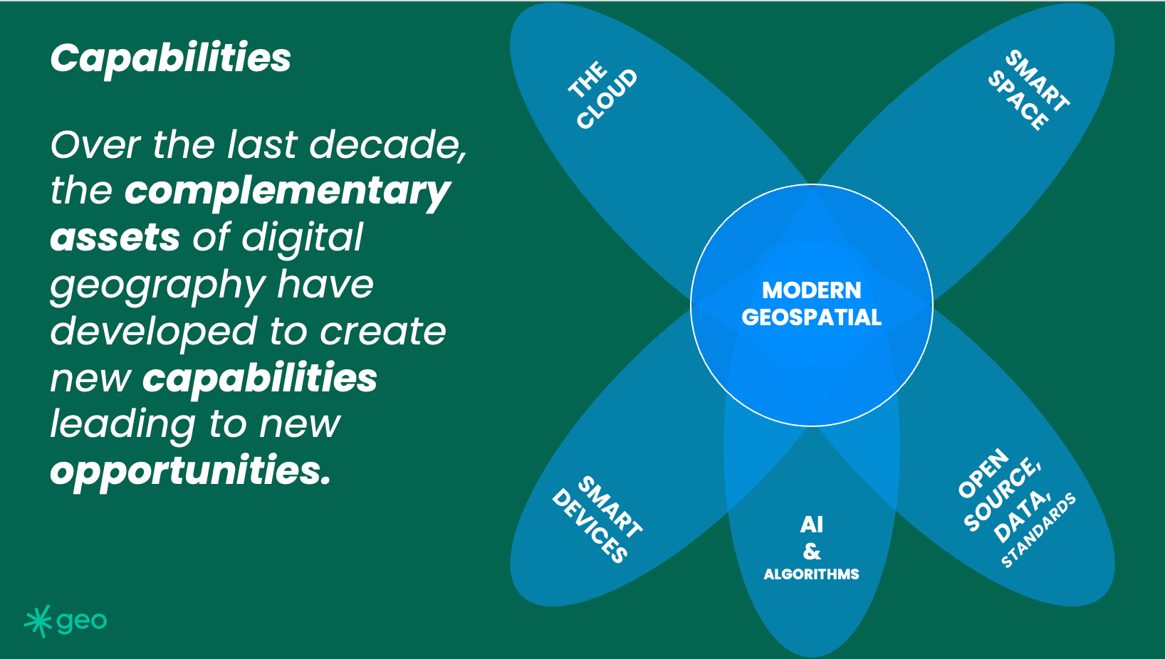 As I have stated numerous times, the geospatial community of practice has changed drastically in the last decade. However, is this change less obvious in some prominent corners of our industry? But clearly, the development and convergence of a series of complementary assets has resulted in a series of net new capabilities.